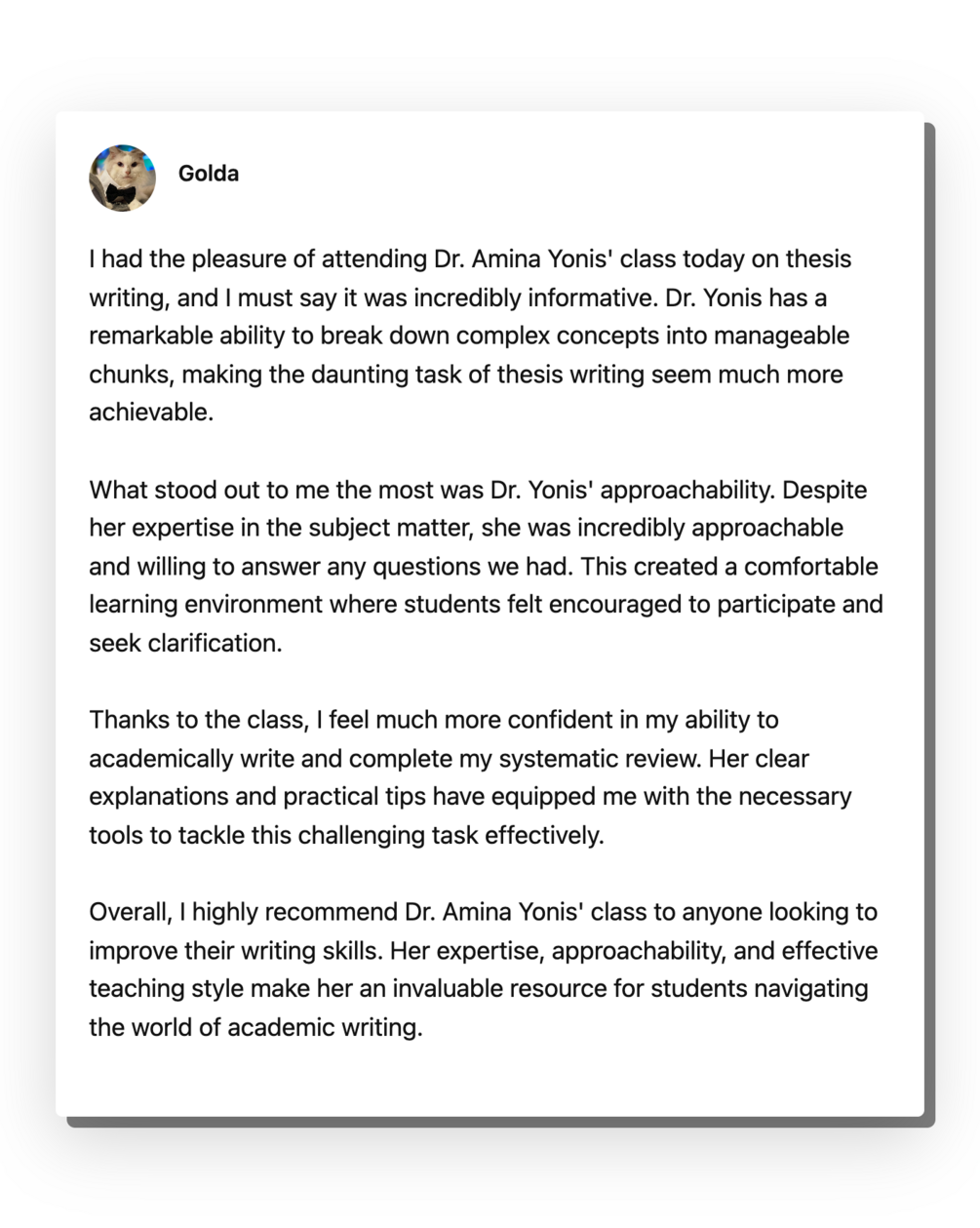 A 2-hour course recording, writing template, presentation slides and writing eBook.